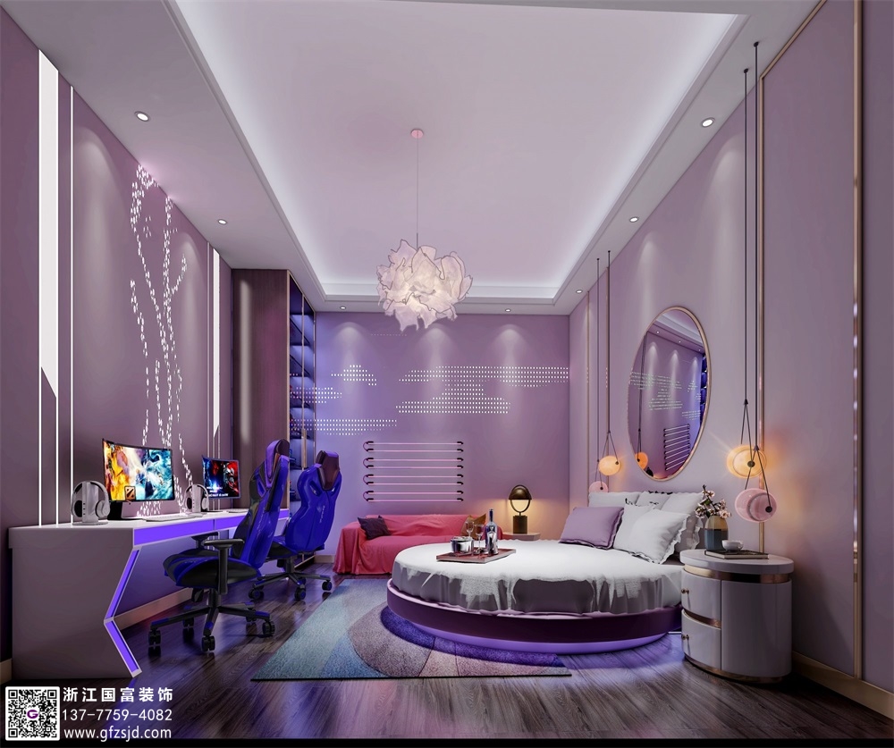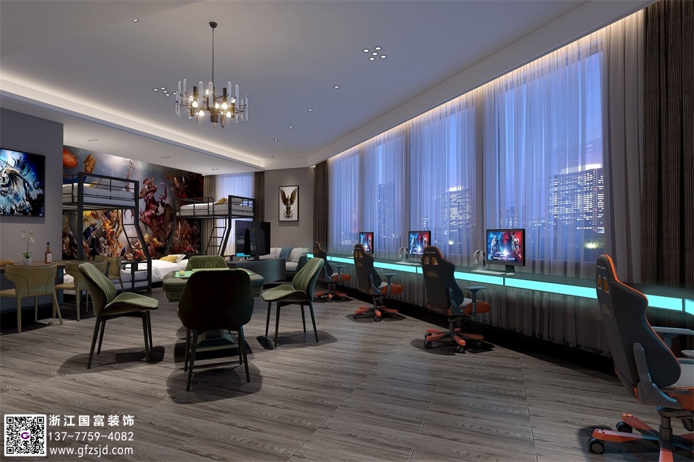 輕奢風(fēng)電競酒店裝修設(shè)計案例效果圖